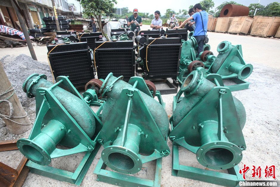 图为上林明亮镇街道摆放的淘金设备(资料图)。小黑 摄