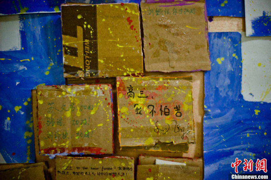 6月3日,广东省惠州市,一间高三教室的墙上,贴满了各式各样的祝福语和誓言的纸条。也让我们一起祝福这些可爱的孩子们,祝福他们经历这场残酷的人生磨砺后,迎来灿烂美好的未来。周楠 摄 图片来源:CFP视觉中国