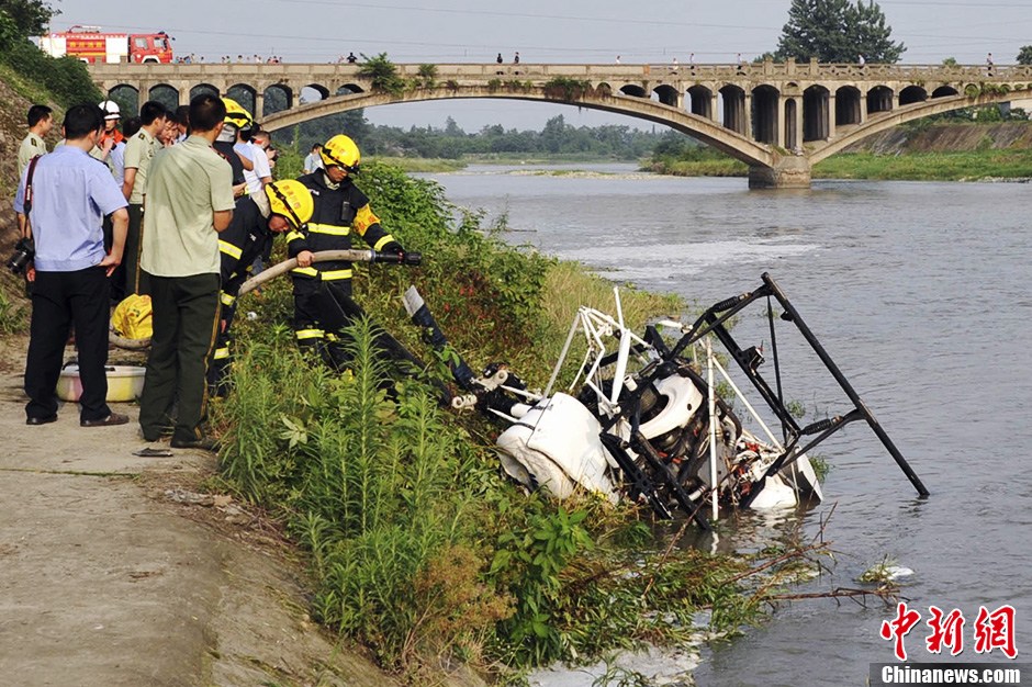 6月6日下午,四川德阳广汉市境内一小型农用直升机失事坠落,致1名机组人员死亡,另有1人受伤。目前,失事直升机正在打捞上岸,事故中的伤者正在当地医院救治。事故原因有关部门正在调查中。中新社发 刘忠俊 摄