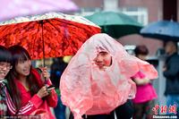 考生家长雨中翘首以盼