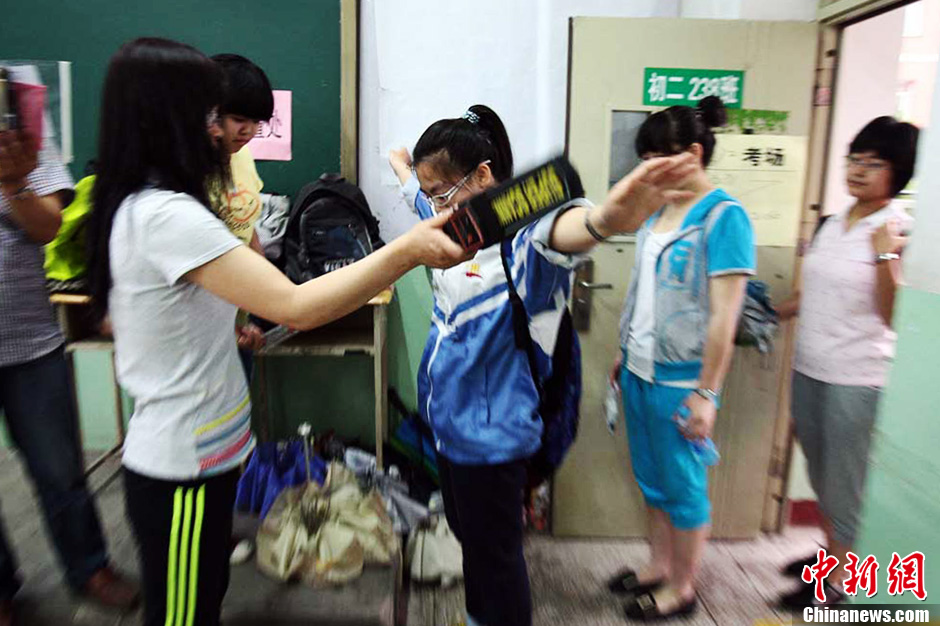 "史上最严"高考现场 金属探测仪进场安检