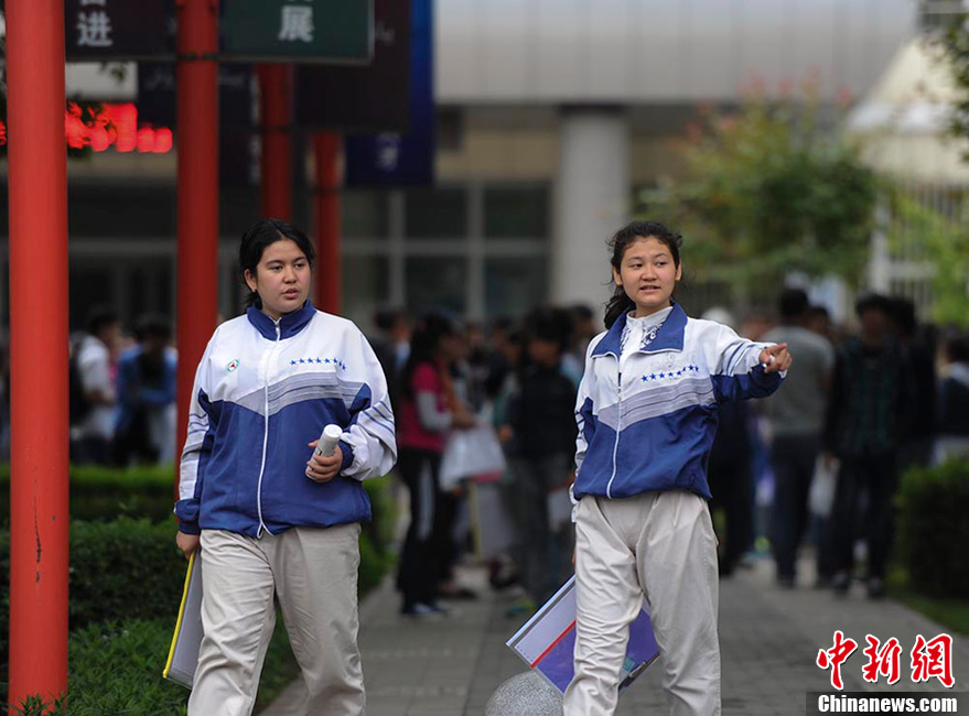 6月7日,2013年全国统一高考拉开序幕,第一门语文考试结束后,乌鲁木齐一民族考点,参加高考的维吾尔族考生轻松步出考场。刘新 摄