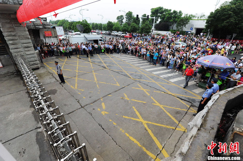 6月7日,2013年普通高等学校招生考试首门科目考试结束,众多家长在湖南师大附中考点前等待考生走出考场。中新社发 杨华峰 摄