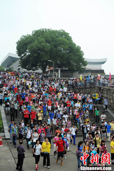 6月7日,2013年普通高等学校招生考试首门科目考试结束,众多考生走出湖南师大附中考点。中新社发 杨华峰 摄