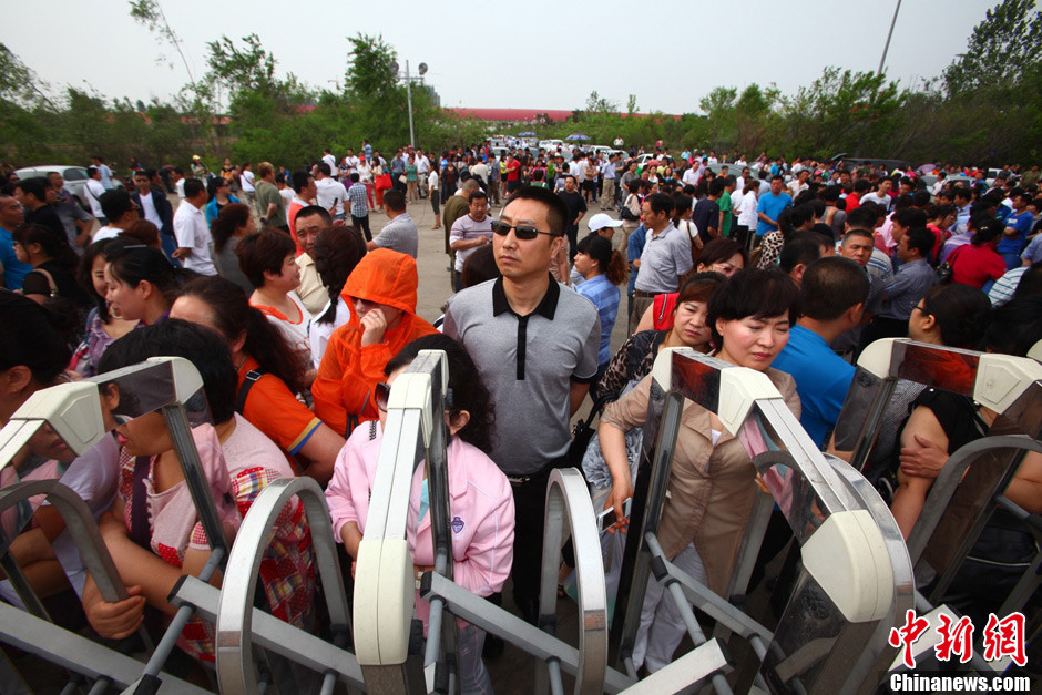 6月7日,吉林省长春市一高考考点,大批家长在门外观望、等待参加高考的孩子。中新社发 张瑶 摄