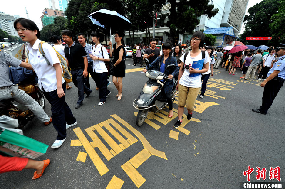 6月7日,2013年普通高等学校招生考试首门科目考试结束。福州三中考点为高考考生设置学生专用通道,方便学生进出考点,并有警察在现场指挥。中新社发 王东明 摄