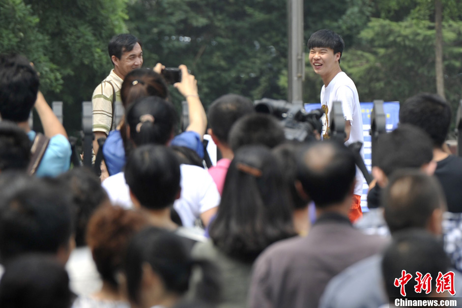 6月7日,2013年普通高等学校招生考试首门科目考试结束,在山西太原五中考点,一名考生满面笑容走出考场。中新社发 韦亮 摄