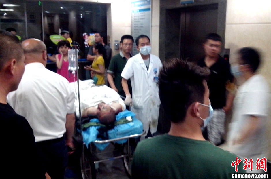 记者从厦门市政府新闻办公室获悉,7日18时20分许,福建省厦门市一公交车在行驶过程中突然起火,共造成47人死亡、34人因伤住院。图为烧伤人员送抵医院。中新社发