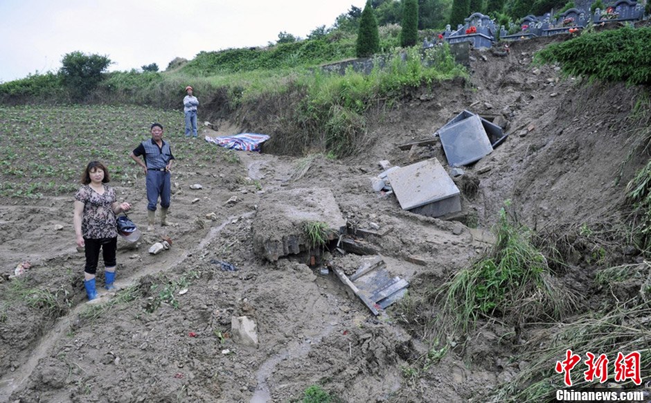 浙江温岭暴雨冲毁公墓