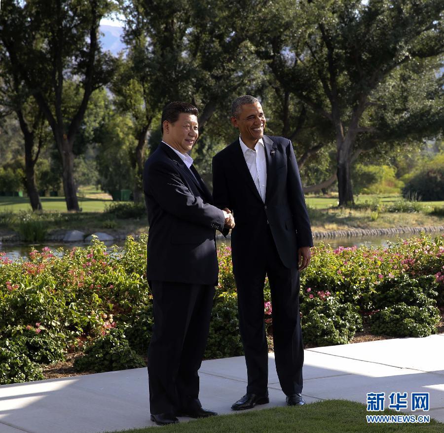 当地时间2013年6月7日,中国国家主席习近平与美国总统奥巴马在加利福尼亚州安纳伯格庄园举行中美元首会晤。兰红光 摄 图片来源:新华网