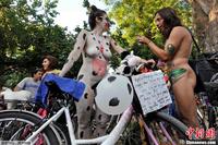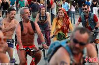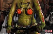 当地时间2013年6月7日,希腊塞萨洛尼基,一千余人参加自行车骑行活动,一些民众裸体或涂身体彩绘参加,呼吁多骑自行车出行,减少污染。
