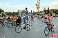 希腊举行裸体自行车活动 赤身男女宣传环保