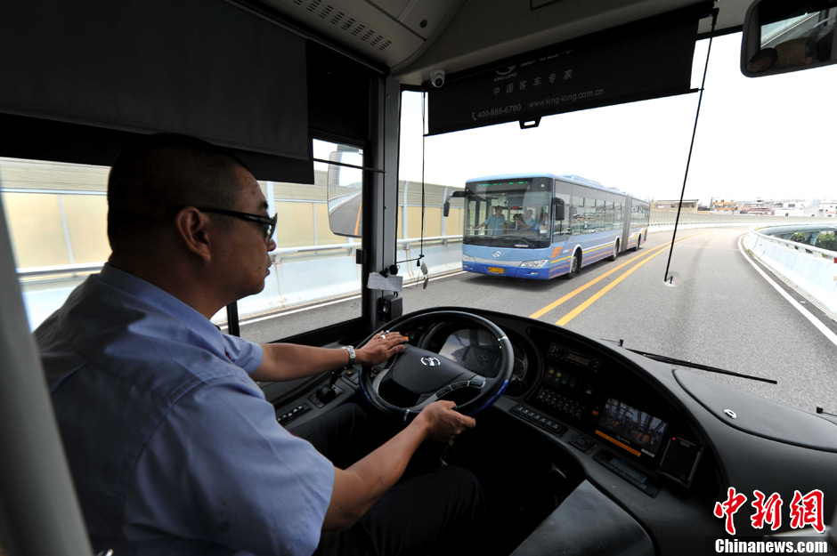 6月8日上午,经过国务院赴厦门工作组和福建省、厦门市连夜的勘查、处置,作为厦门南北交通主动脉的BRT快1线、快2线已开始恢复运营,双向对开。图为出事线路恢复正常运行。 王东明 摄