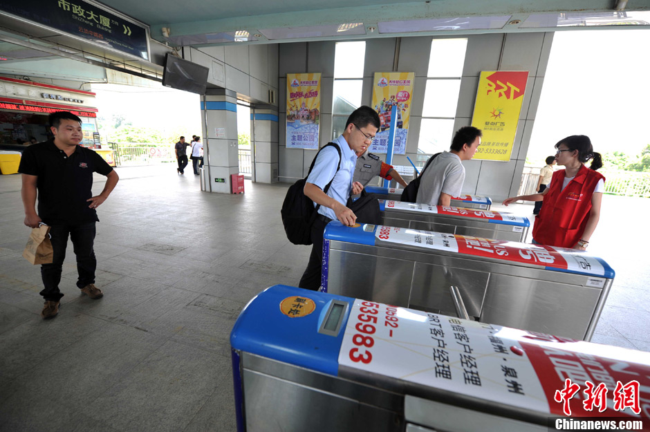 6月8日上午,经过国务院赴厦门工作组和福建省、厦门市连夜的勘查、处置,作为厦门南北交通主动脉的BRT快1线、快2线已开始恢复运营,双向对开。图为乘客刷卡进站。王东明 摄