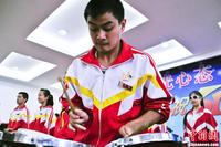 6月7日,贵阳市盲聋哑学校盲部39名学生演奏的节目《山鼓》参加贵州省残疾人艺术汇演,获得器乐组金奖。他们中年龄最小的9岁,最大的21岁。由于视障,他们的排练难度是常人的几倍,一个简单的动作都需要老师逐个多次地纠正。除了排练,文化课也必须跟上。为看的更清,龙威近乎贴到盲文本上。中新社发 张元 摄