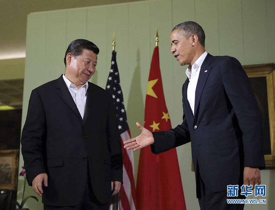 当地时间2013年6月7日,中国国家主席习近平与美国总统奥巴马在加利福尼亚州安纳伯格庄园举行中美元首会晤。会晤后,习近平与奥巴马共同会见记者。兰红光 摄 图片来源:新华网