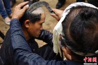 岜沙人传说是蚩尤第三个儿子的后裔,蚩尤被黄帝打败迁居西南,现聚居在距贵州省黔东南州从江县城6公里的岜沙苗寨中。岜沙男人崇尚武力,头顶挽着发髻,平时穿着自纺的无领布衣与直筒裤,常年身挎腰刀,肩扛火枪,被誉为“最后的枪手部落”。中新社发 王超 摄