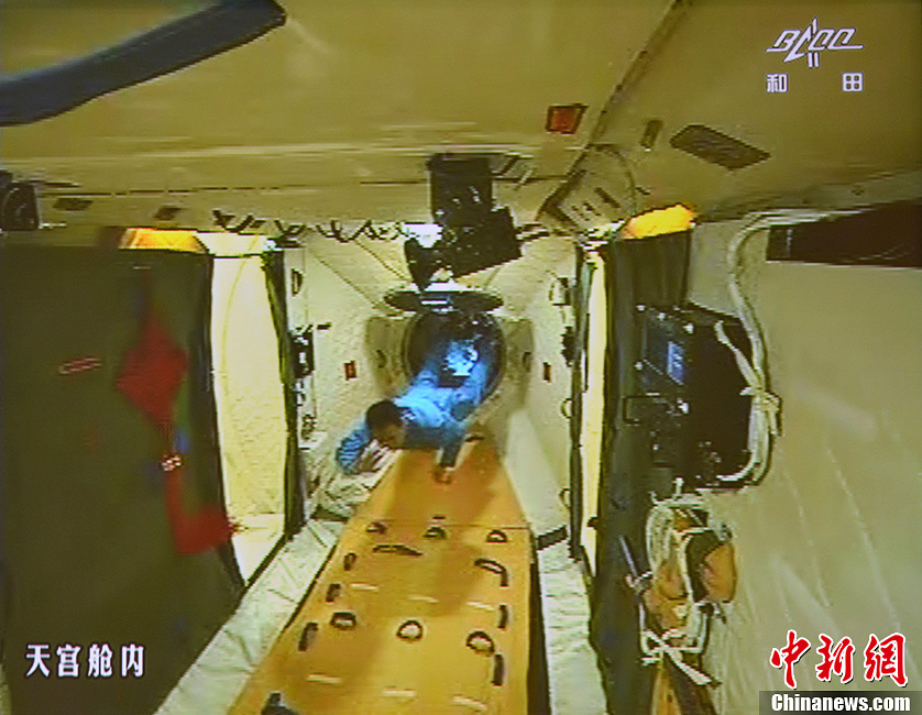神舟十号航天员以漂浮姿态进入天宫一号