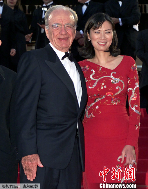 图为2001年5月9日,法国戛纳,默多克与妻子亮相戛纳电影节红毯。