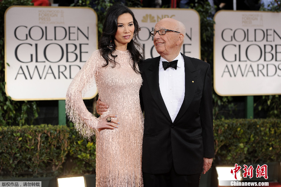 图为2012年1月15日,美国洛杉矶,邓文迪与默多克共同出席第69届金球奖颁奖典礼。