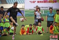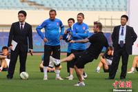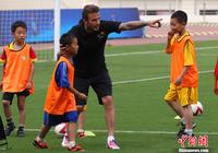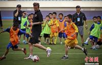 6月18日,作为中国青少年足球发展计划及中超联赛的推广大使、英国著名球星贝克汉姆来到南京奥林匹克体育中心,与小学生一起踢球并观看了舜天俱乐部球队训练。泱波 摄
