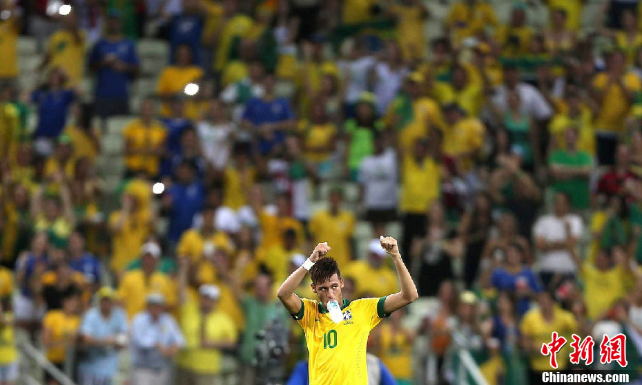 北京时间6月20日,联合会杯A组第2轮,巴西2-0战胜墨西哥,与意大利携手出线。内马尔连续2场首开纪录,成为1999年小罗之后第2位前2场联合会杯都有进球的巴西球员,终场前他又助攻替补前锋若破门。图片来源:Osports全体育图片社