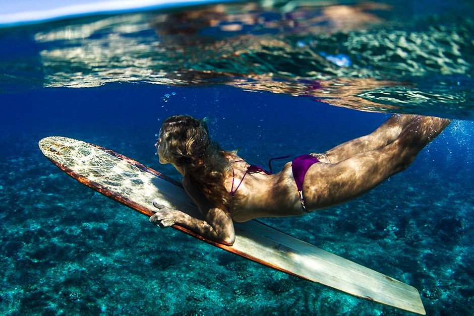 比基尼美女海底冲浪 妙曼身姿追逐汹涌波涛