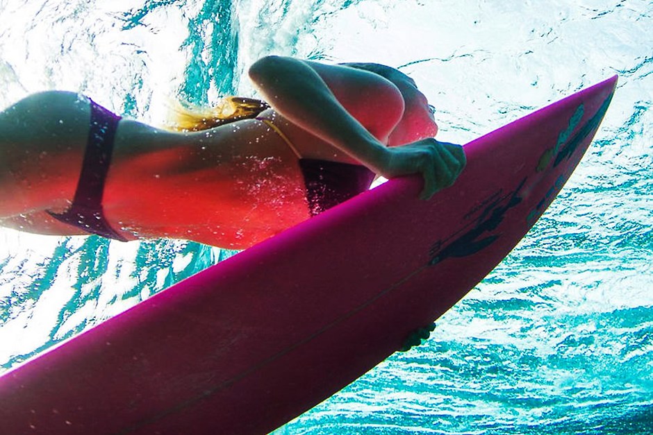 比基尼美女海底冲浪 妙曼身姿追逐汹涌波涛