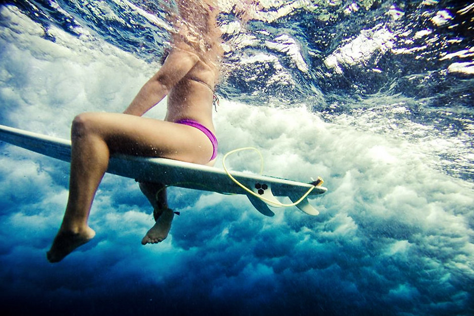 比基尼美女海底冲浪 妙曼身姿追逐汹涌波涛