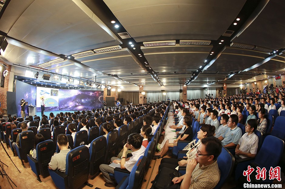 6月20日10时许,神舟十号航天员在天宫一号开展基础物理实验,为青少年进行中国首次太空授课。图为北京人大附中地面课堂。中新社发 张娅子 摄