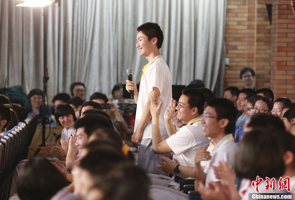6月20日10时许,神舟十号航天员在天宫一号开展基础物理实验,为青少年进行中国首次太空授课。图为北京人大附中地面课堂。中新社发 张娅子 摄