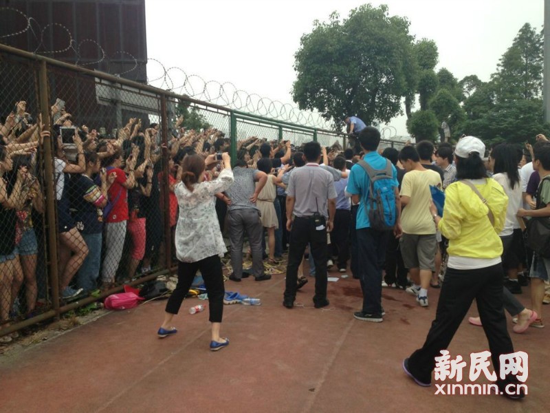 今天(6月20日),原定于下午2点到达同济大学体育馆与同济大学足球队开展交流活动,但小贝在进入球场时,现场观众一度冲开大门,造成踩踏情况,造成至少五人受伤。陈炅玮 摄 图片来源:新民网