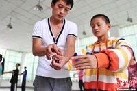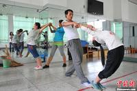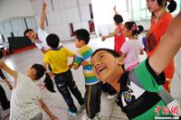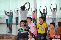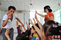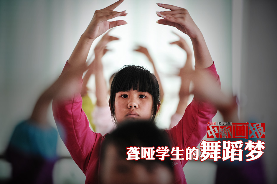 6月20日,昆明盲哑学校内,小学组和初中组的聋哑学生正在上舞蹈课,课堂里没有声音,只有简单的手语和不断重复的舞蹈动作。为了参加云南省残疾人文艺汇演,他们加紧了教学时间,希望能在比赛上取得好成绩。中新社发 任东 摄