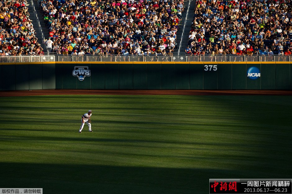6月18日,内布拉斯加州奥马哈举行的大学棒球世界系列赛(CWS)的第八场比赛中,北卡罗来纳州立大学对阵加州大学洛杉矶分校的比赛中,北卡罗来纳州立大学的威廉斯(Brett Williams)蹲在中外场。