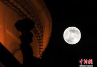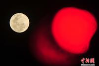 6月23日,“超级月亮”挂福州夜空。当日,正好是农历十六日,据天文部门预测,23日19时11分,月球过近地点,距地球35.699万公里,大约19时30分左右,月亮又迎来月圆时刻,这便是2013年最大最圆的月亮,也就是“超级月亮”。中新社发 吕明 摄