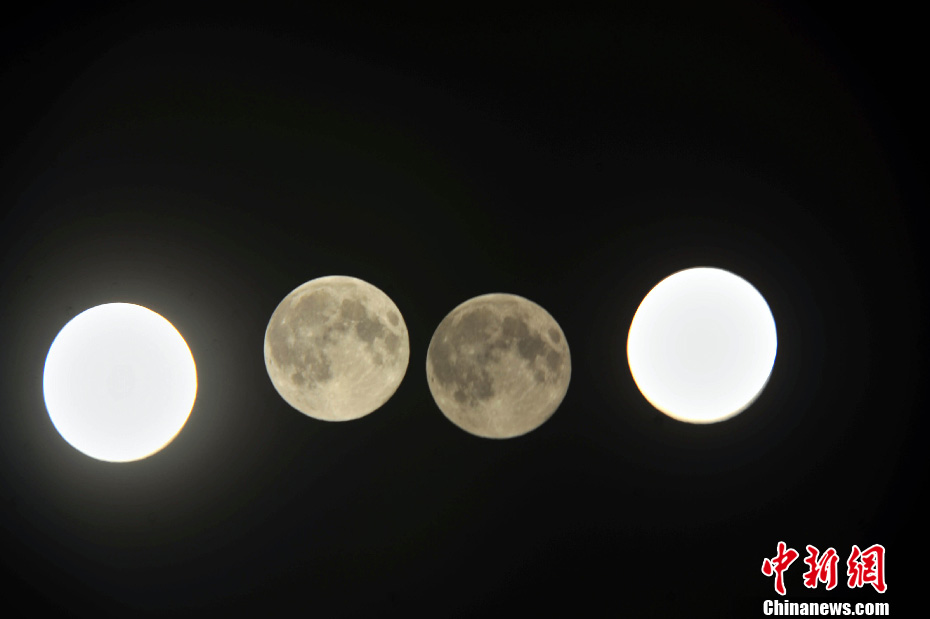 6月23日,沈阳上空的“超级月亮” 。当日,北京时间6月23日晚上7时12分,月球将运行到月球轨道的近地点,这是今年来距离地球最近的一个,据天文部门预测,将出现“超级月亮”。月球与地球相距为全年最近,只有356991公里;月亮的视直径最大,角距为33.47分,比太阳全年任何时候的视直径都大。“超级月亮”上一次发生在2012年5月6日,下一次将出现在2014年8月11日。(多次曝光)中新社发 于海洋 摄