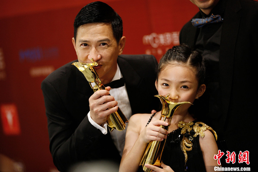 2013年6月23日,上海,第16届上海国际电影节闭幕红毯。《激战》男主角张家辉获得最佳男主角、10岁小女孩李馨巧获得最佳女主角。图片来源:东方IC 版权作品 请勿转载