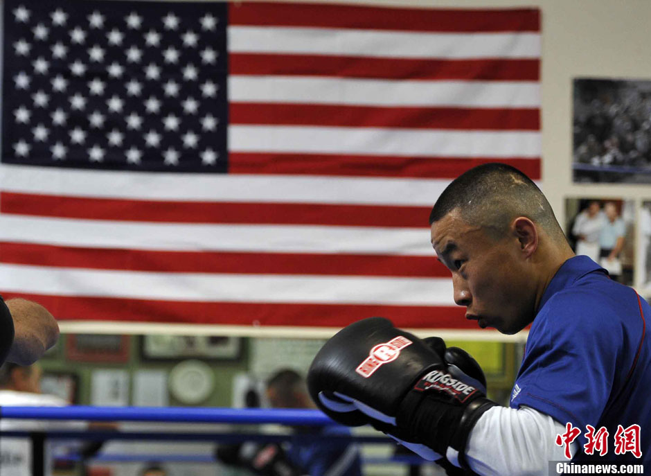 随着近年来中国拳击运动的快速发展,中国职业拳击选手在国外的生活与发展也逐渐走入人们的视线。中国著名奥运冠军邹市明在美国开始训练并征战职业拳坛的同时,还有一名很早便涉足职业拳击运动,并获得WBO轻量级亚洲冠军称号的中国职业拳手杨连慧,也在美国默默追寻着他的职业拳击梦。中新社发 毛建军 摄
