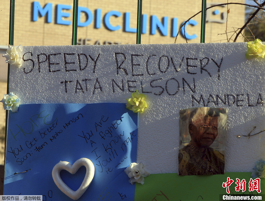 南非总统称曼德拉病情危急 医院外挂满祝福