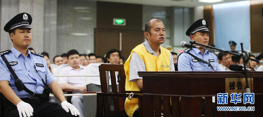 6月25日,王书金(左)在河北省邯郸市中级人民法院庭审现场陈述。当日上午9时,王书金强奸杀人案在河北省邯郸市中级人民法院开庭。由于此案曾牵扯出19年前聂树斌案“一案两凶”的疑云,因此备受舆论关注。 2005年1月,河北省广平县人王书金在河南被警方抓获,他供述曾强奸多名妇女并杀死4人,其中包括一起“1994年石家庄西郊玉米地奸杀案”,而这起案件原本早已被石家庄警方侦破,“凶手”聂树斌已于1995年被石家庄市中级人民法院以强奸罪和故意杀人罪执行死刑。新华社发 丁立新 摄 图片来源:新华网