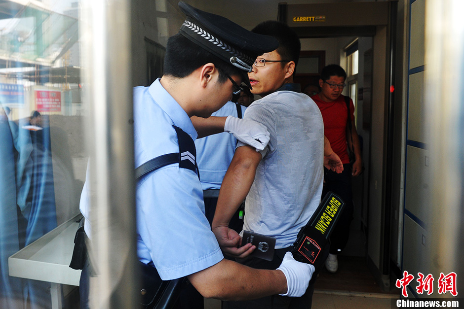6月25日上午,河北省高级人民法院在邯郸市中级人民法院开庭审理上诉人王书金强奸、故意杀人一案。这起案件因与聂树斌案有密切关系而备受关注。1994年,河北省石家庄市西郊发生一起强奸杀人案,聂树斌被指控为嫌犯,并于次年被执行死刑。2005年,河南警方抓获一名叫王书金的男子,他承认自己是“聂树斌案”的真凶。图为一名记者正被安检。中新社发 翟羽佳 摄