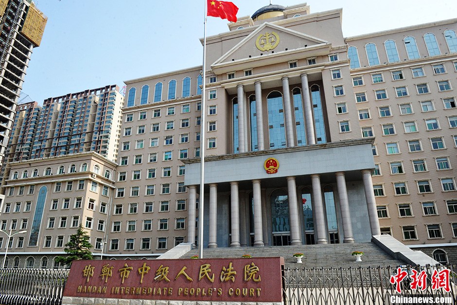 6月25日上午,河北省高级人民法院在邯郸市中级人民法院开庭审理上诉人王书金强奸、故意杀人一案。这起案件因与聂树斌案有密切关系而备受关注。1994年,河北省石家庄市西郊发生一起强奸杀人案,聂树斌被指控为嫌犯,并于次年被执行死刑。2005年,河南警方抓获一名叫王书金的男子,他承认自己是“聂树斌案”的真凶。图为法院正门。中新社发 翟羽佳 摄