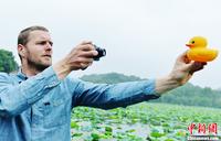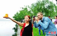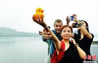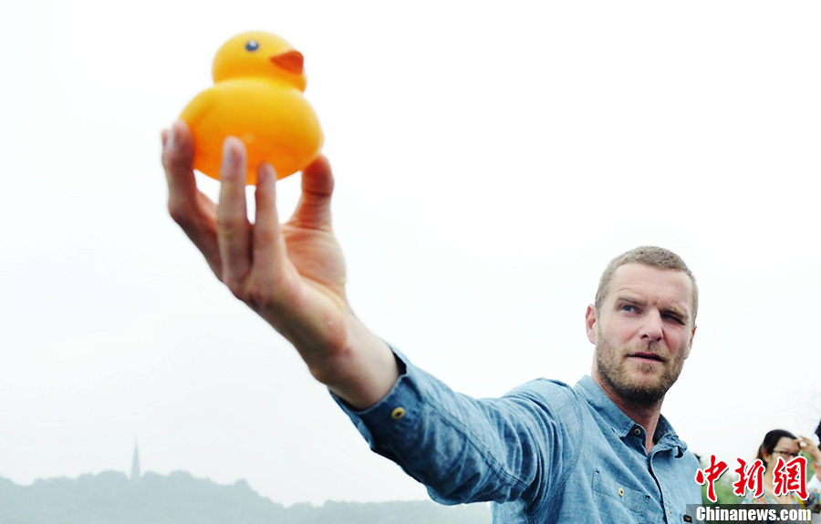 “大黄鸭之父”现身杭州 为黄鸭落户西湖踩点
