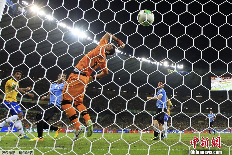 北京时间6月27日凌晨,联合会杯半决赛首场比赛在贝洛奥里藏特展开角逐,巴西2比1战胜乌拉圭,连续第3届杀进联合会杯决赛,同时这也是他们第5次进决赛,联合会杯连胜纪录扩大到11场。上半时,弗兰点球被塞萨尔扑出。此后,内马尔凌空吊射被扑出,弗雷德补射得手。下半时,卡瓦尼扳平比分。第86分钟,内马尔角球助攻保利尼奥绝杀。