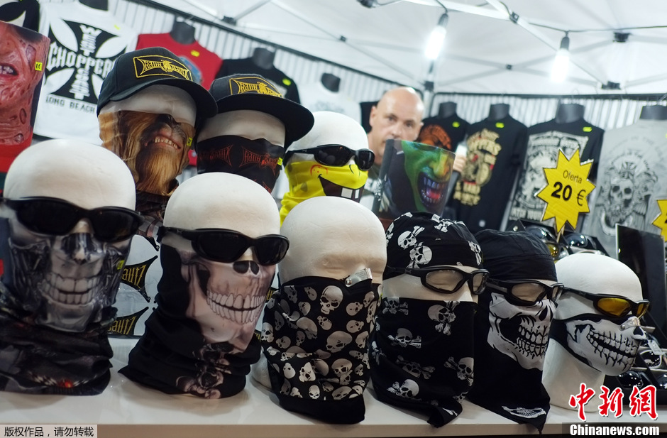 当地时间2013年6月27日,西班牙马德里举行街头艺术节。图为一家面具店。