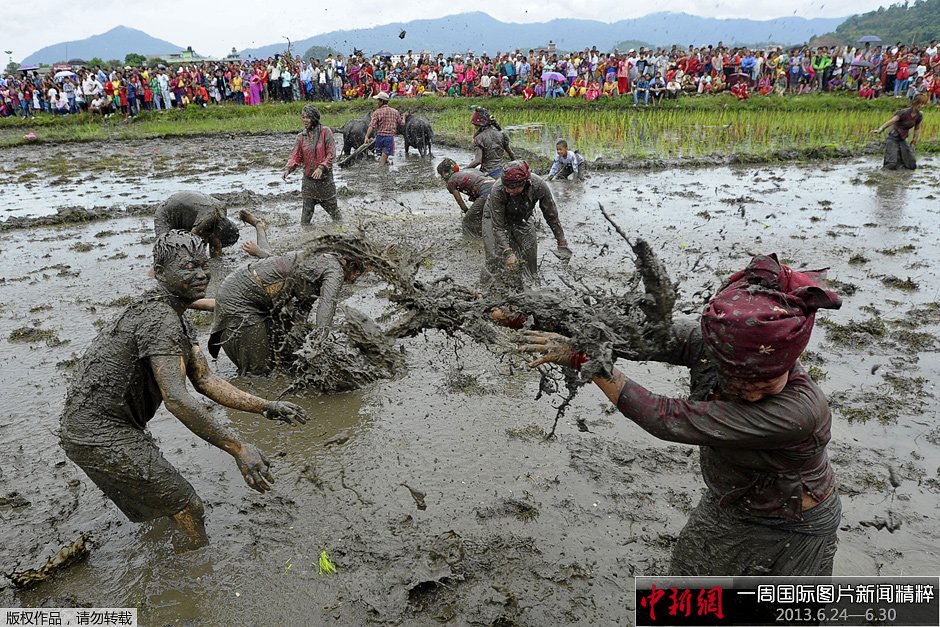 周六(29日),尼泊尔民众在水田内庆祝“水稻日”到来。每年水稻种植季的开始时,尼泊尔当地民众都会用泼泥浆、滚泥巴等传统方式庆祝开耕,祈盼好的收成。
