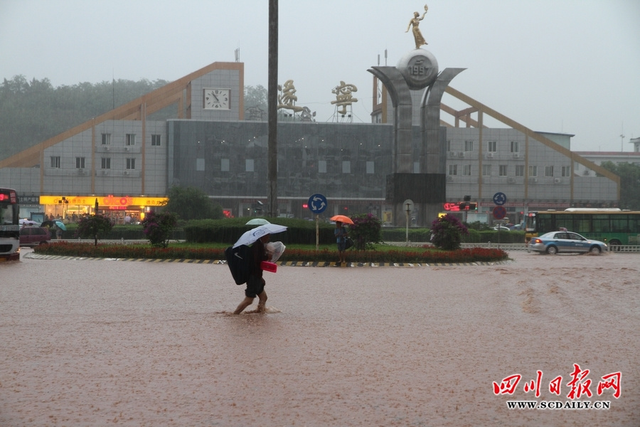 四川多地暴雨致2死5失踪 遂宁市区成“汪洋”