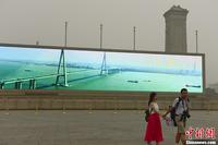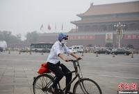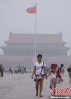 7月1日,北京长安街因雾霾天气能见度不高。从上月28日开始至今,北京已连续4天出现重度污染天气,其中大部分时间,北京市区细颗粒物浓度达到6级严重污染。中新社发 刘震 摄