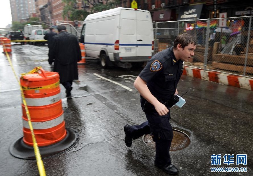 7月1日,美国纽约,一名警察在枪击案现场调查。当天上午,纽约曼哈顿区中城49街附近发生一起枪击案,一名建筑工人遭到枪手袭击,胸部中弹,目前已送往医院紧急抢救,嫌犯仍持枪在逃。王雷 摄 图片来源:新华网