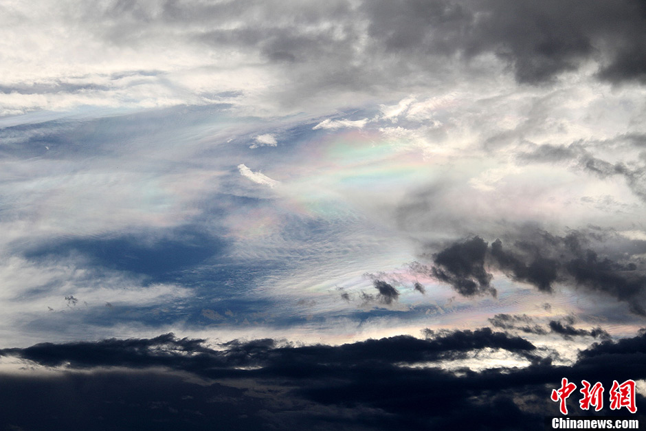 7月1日傍晚,江西遂川,雨后天空,呈现多色彩云,斑驳陆离,绚丽多姿。当日傍晚6时40分左右,在江西省遂川县西部上空出现了一道奇特的彩光祥云,淡淡少许绿色、黄色与红色等云彩现出天空上,色彩斑斓,引得路人纷纷停下脚步观看这一奇异天象。李建平 摄